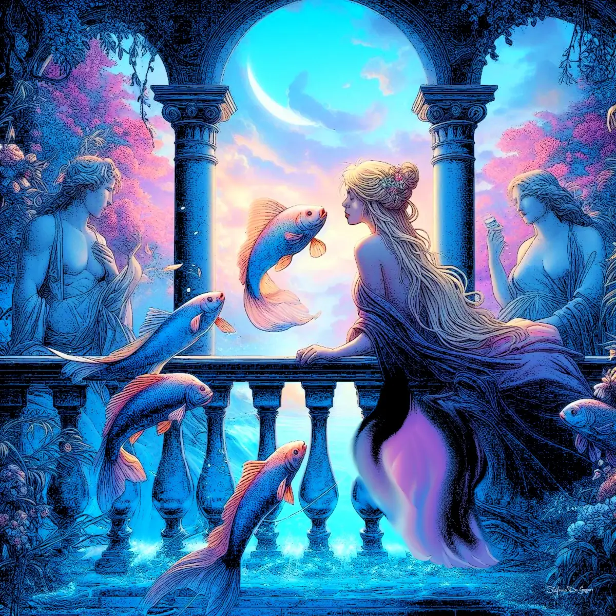 In addition to its symbolic content, Fish Innocent Digital Art demonstrates a refined use of digital tools. Gentle textures and luminous gradients enhance the sense of transparency, while carefully designed details evoke the fluidity of water. Therefore, the piece resonates both visually and emotionally, offering a contemplative experience to the observer.